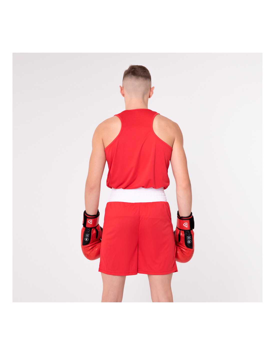 Además, el pantalón corto de competición, fabricado en 100% poliéster, ofrece espacio adicional en la entrepierna y una cintura elástica de 10 cm con cordón de ajuste, asegurando un ajuste perfecto sin deslizamientos. Disponible en colores azul y rojo.